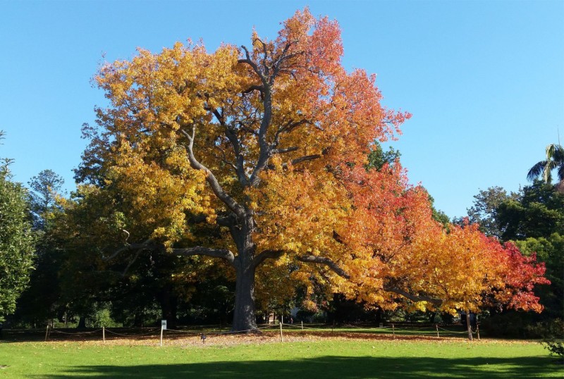 Liquidambar is a very ornamental tree, native to Mexico, the United States and mountainous regions of Central America. The name Liquidambar comes from the sap of the plant, which is amber in color, resinous and sweet, and spills in abundance when the trunk or branches are cut or injured. They are grown in deep, acidic soils. It has a single trunk with a conical shaped crown. It is a large tree reaching 20 to 30 meters heigh. The leaves are in a star shape with 5 to 7 points (image 02). These are bright and aromatic. During spring and summer, the leaves are dark green and in autumn the leaves have a wide variety of colors such as light green, yellow, orange and red. A feature that makes this tree so special. In winter, the tree has a more dramatic air with the loss of leaves, however, it allows the passage of light. In the spring the blooms appear, spherical and yellow. These are followed by the fruits, also globose (image 03), covered by thorns and woody when ripe. Each fruit is composed of up to 40 capsules, with one or two seeds each. Liquidambar is an interesting tree for landscaping in large areas such as squares, parks and avenues. They are very resistant to the cold and for this reason, it has adapted easily to other places. It is believed that Liquidambar was introduced in Europe at the end of the 17th century and today it is possible to find it in abundance in Portugal. The liquidambar wood is reddish-brown in color, fine and uniform in texture, relatively hard, heavy and resistant to knocks. It is difficult to dry and wring easily. This wood has a high commercial value and is used for many purposes in the United States, such as furniture, cooperage, boxes, packaging, etc. Sometimes it is sold under the name of satin walnut. It is also used in the plywood industry and for obtaining pulp. In the past, it was imported into Europe and was widely used. However, currently, the wood is used only in its origin place. By making an incision in its trunk, a balm with a smell similar to that of vanilla is obtained, of solid consistency. This is used for medicinal purposes in therapeutic preparations and as a fixative in the manufacture of perfumes. In most countries, such as Spain and Portugal, for example, its main use is in ornamental landscaping due to the variation of leaf colors during autumn.